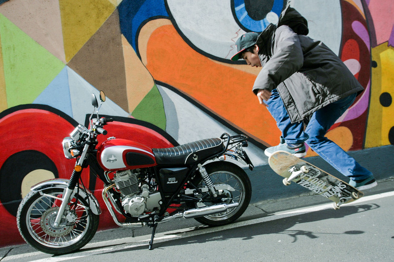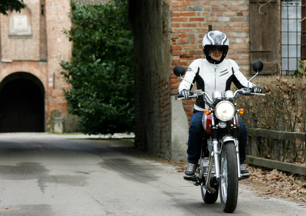 Il suo motore non è certo un tornado, però è piacevole e malleabile: in quarta riprende senza strappi da circa 2.500 giri, in quinta invece è meglio arrivare ai 3.000 per dare tutto gas, ricambiati con un notevole brio che aiuta nei sorpassi, senza dover tirare per forza il collo al povero monocilindrico, che con l’avvicinarsi dei 7.000 giri inizia a vibrare un po’. A quel punto, però, è meglio non insistere col gas, anche perché si avverte chiaramente che arrivare al limitatore è utile quanto una tortura ad oltranza. Viaggiare tra le curve tra i 3.000 ed i 6.500 giri è dunque sufficiente e comunque divertente, oltre che rilassante. Ci si gode la moto, insomma, e nel contempo il panorama, senza l’impulso di voler strafare, anche se le Kenda Cruiser mi son sembrate sincere, e di scherzi strani la ciclistica non ne fa, sia in curva che in frenata.