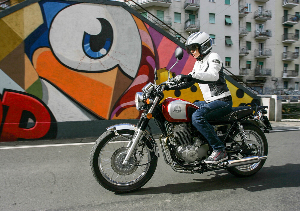 Le piacevoli motoleggere di cui sopra, del resto, sono evidentemente ispirate proprio a modelli inglesi e giapponesi degli anni sessanta/settanta. E se alcune versioni da 125 e 250 cc abbinano allo stile retrò qualche nota tecnica più vicina ai giorni nostri (tipo forcelle a steli rovesciati e freni a disco anche posteriormente), la Five Hundred - come del resto la rinata Yamaha SR400 e le stesse Kawasaki W650 e 800 - posteriormente monta il suo bravo freno a tamburo.