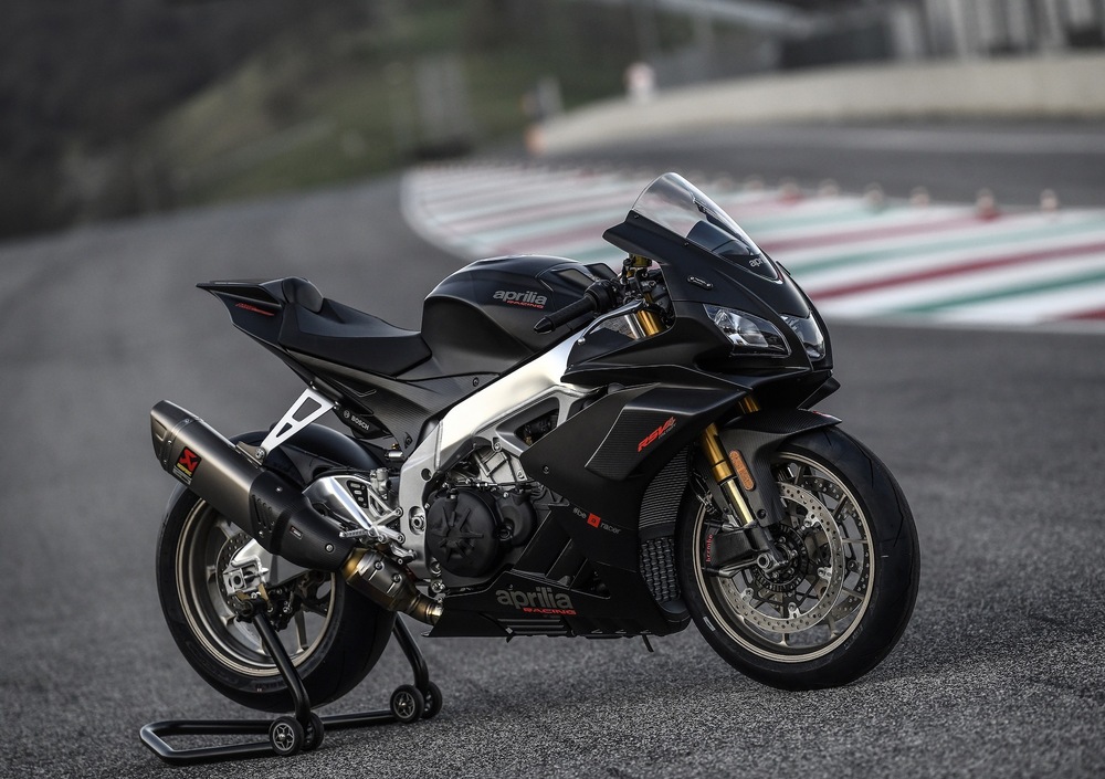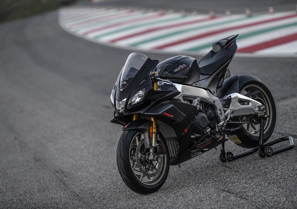 I cerchi di 17' calzano pneumatici 120/70 all'anteriore mentre al posteriore è possibile scegliere tra 200/55, 190/50 e 190/55, per una ampiezza di scelte di assetto praticamente al livello di una reale superbike dalla quale la RSV4 non si discosta troppo nemmeno per il peso: 177 Kg a secco e 199 in ordine di marcia con il pieno, incredibilmente più contenuto di quello della sorella di 1000 cc grazie sia al silenziatore in titanio firmato Akrapovic che alla batteria al litio.