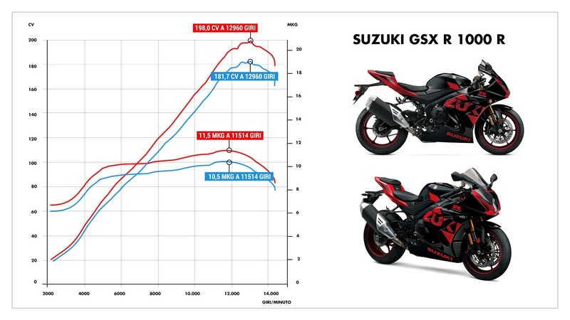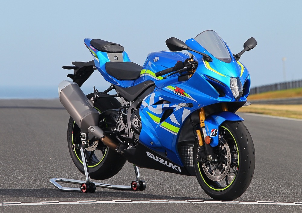 La Suzuki GSX-R1000R (qui la prova) è apparsa sul mercato nel 2017 trasferendo lo spirito, e le soluzioni, che la casa di Hamamatsu utilizza nella MotoGp GSX-RR svecchiando in un sol colpo la gamma sportiva. Presenta, come la BMW S1000RR, un sistema di distribuzione a fasatura variabile, in questo caso chiamato SR-VVT e funzionante attraverso sfere centrifughe, che permette al quattro cilindri in linea Suzuki dotato di valvole in titanio, pistoni forgiati e bilancieri a dito con trattamento DLC, di unire una potenza massima di 202 cavalli a 13.200 giri con una curva di coppia ai bassi e medi sostenuta da ben 118 newton/metro a 10.880 giri.