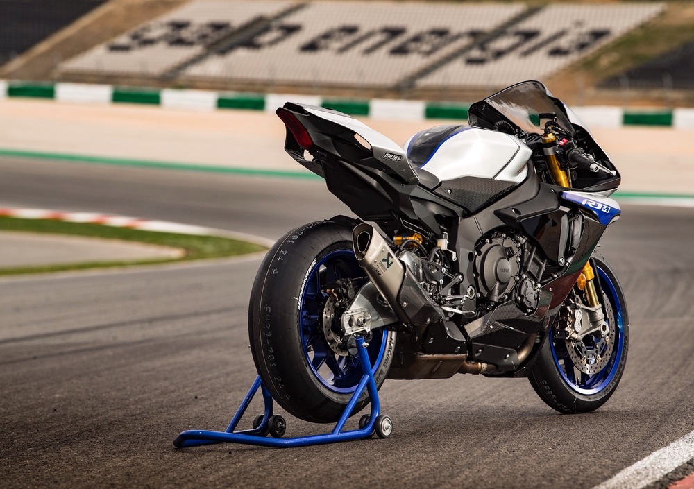 A frenare la R1M pensano le pinze radiali monoblocco Nissin, la coppia di dischi anteriori di 320 mm e la pinza a singolo pistoncino con disco posteriore di 220 mm, il tutto gestito dal già citato sistema UBS. I cerchi in magnesio di 17' sono vestiti con pneumatici 120/70 e 200/55 e la R1M dichiara un peso di 201 kg in ordine di marcia.