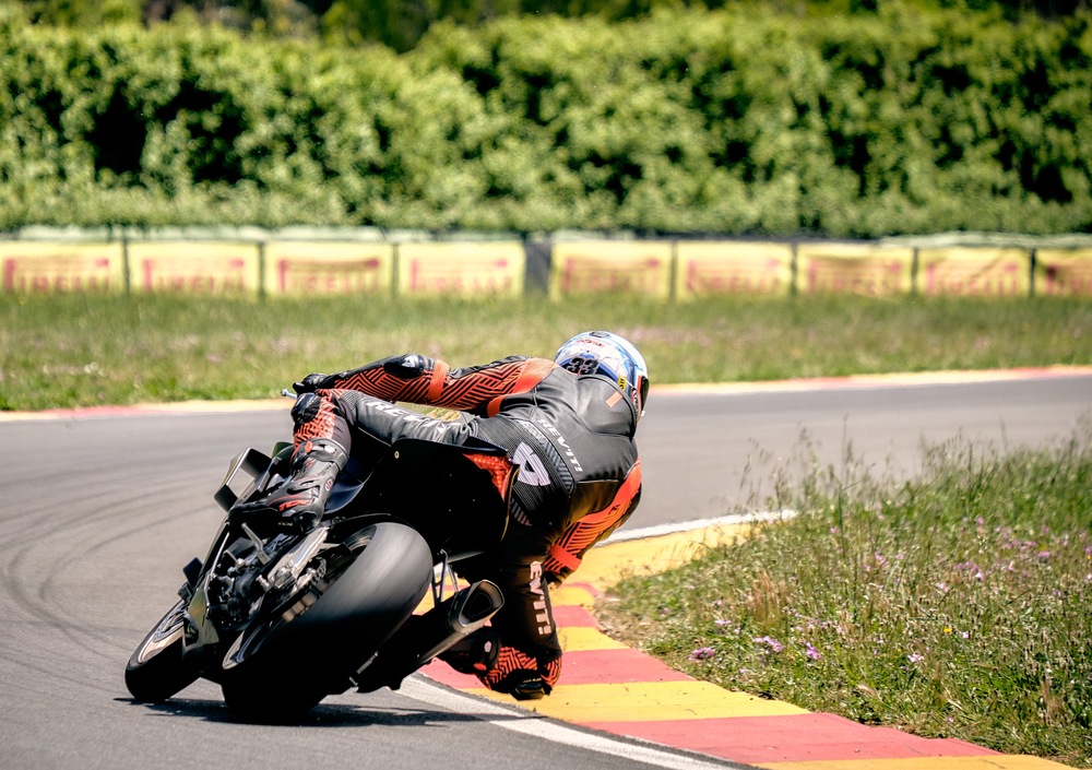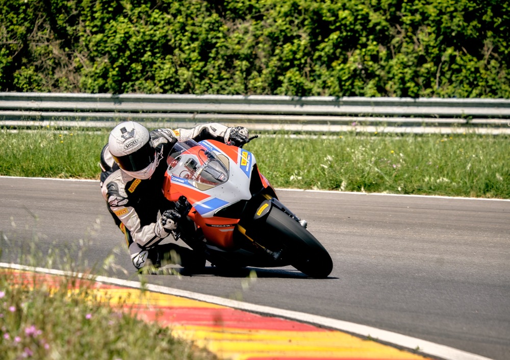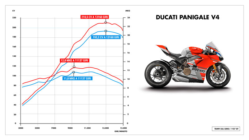 La motricità è notevolissima, la sospensione posteriore tiene a bada la spinta dei cavalli e il notevole grip che l’insieme di ciclistica e meccanica offre viene esaltato montando le Pirelli slick. Motricità e potenza elevate riducono le distanze fra una curva e l'altra, così come i momenti nei quali si può tirare il fiato. Ci sono tanti cavalli in alto, ma a fare la differenza con gli altri motori – meno con il V4 Aprilia, anch'esso di cilindrata gonfiata – è la potenza in più che c'è a ogni regime di giri: dai poco utilizzati 3.000 (almeno in pista) fino ai 14.000 giri di taglio del limitatore.