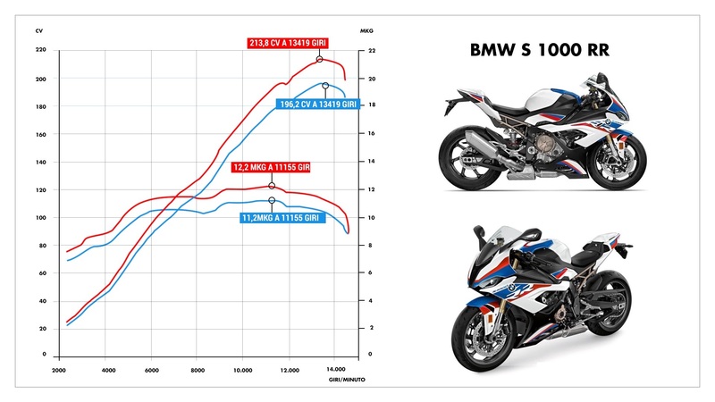 Tutto questo impegno nello snellimento e alleggerimento su motore e telaio ha portato un peso in ordine di marcia e con serbatoio al 90% di 197 kg, grazie anche al nuovo scarico più leggero di 1,3 kg, ma acquistando il pacchetto M si arriva fino a 193,5 kg con i pregiati cerchi in fibra di carbonio e la batteria al litio, oltre alla possibilità di regolazione del fulcro forcellone e alla Modalità Pro già citata.