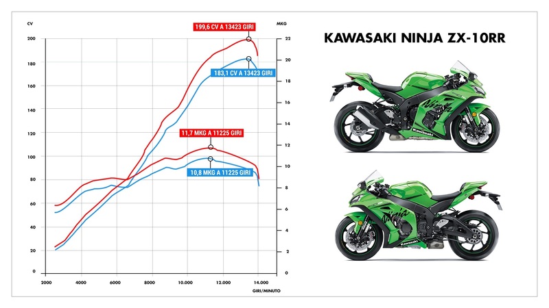 Rispetto alle unità delle versioni stradali R ed SE, il motore quattro cilindri di 998 cc con corpi farfallati di 47 mm viene potenziato fino ai 204 cv a 13500 giri/min (214 con RAM Air in pressione) e 115,7 Nm a 11200 giri attraverso nuove bielle in titanio Pankl, complessivamente più leggere di 408 grammi. Il risultato è che il quattro cilindri di Akashi guadagna 600 giri/min e un cavallo rispetto al modello precedente, arrivando a 14.800 giri/min e garantendo una solida base per ulteriori elaborazioni per chi la volesse usare per gareggiare nei campionati Superstock o SBK dove il regime di giri massimo del modello di serie ha una certa importanza dal punto di vista dei regolamenti...