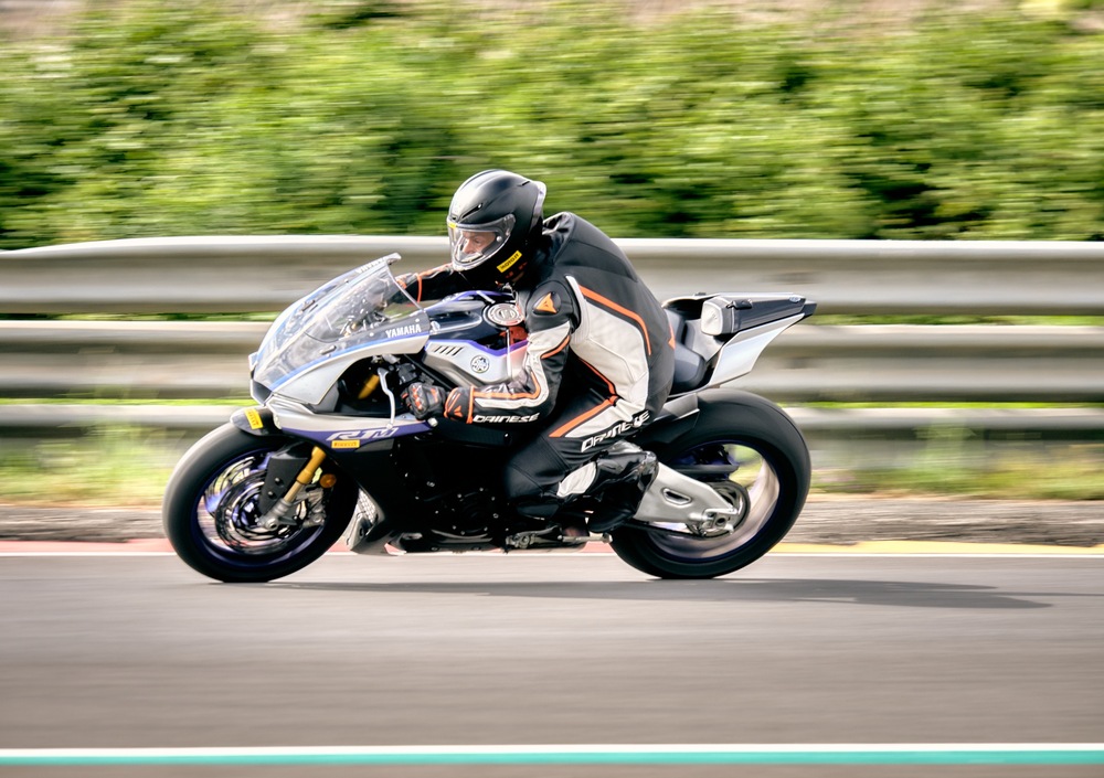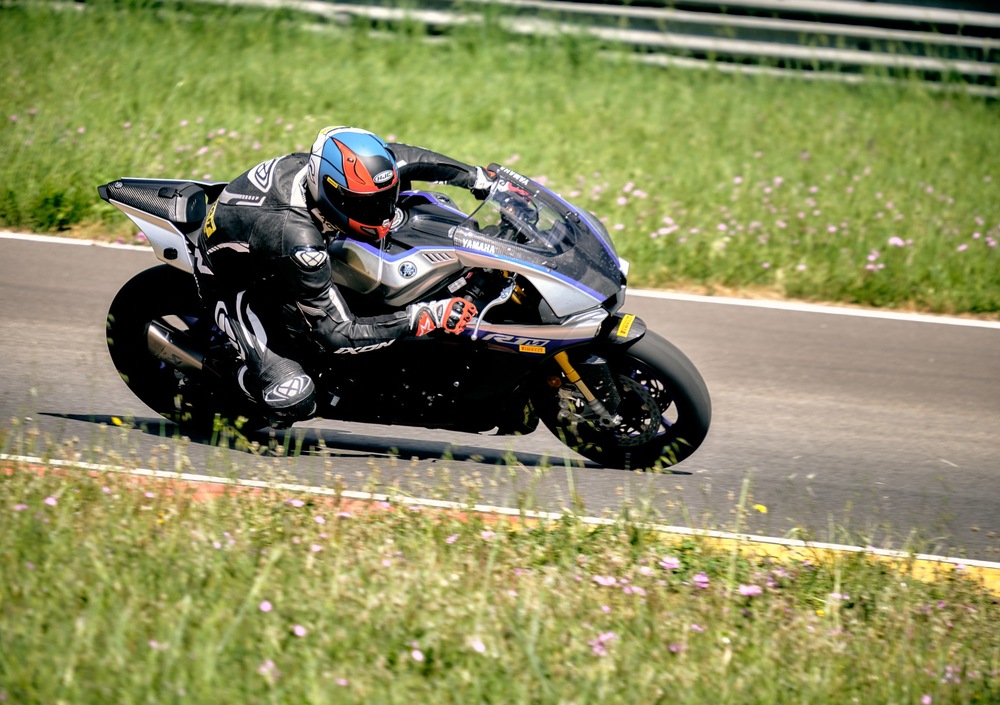 La R1M dà immediatamente una bella confidenza grazie alla sua guida rotonda, veloce, e alla scarsa sensazione di peso al manubrio; è una moto relativamente svelta in ingresso di curva, anche se perde un po’ velocità nelle inversioni di inclinazione rispetto alla S 1000 RR ad esempio, sempre per restare fra le rivali con il motore quattro in linea, che in quella fase è formidabile. Nelle lunghe curve in accelerazione, tipiche di Pergusa, la R1M mostra una tenuta della linea molto elevata: merito delle misure ciclistiche votate alla stabilità sul veloce così come in frenata.