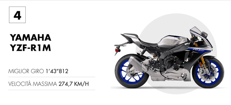 La sua dote migliore nell'economia del tempo sul giro a Pergusa, secondo Alfio, sta nell’elettronica: il suo intervento è poco percettibile e non rallenta la moto, ma anzi la rende più veloce, soprattutto per un matching perfetto con le gomme utilizzate. Una dote che si accorda perfettamente alla personalità della R1M, da sempre un riferimento in termini di equilibrio fra motore e ciclistica, e che è stata ulteriormente perfezionata con l’aggiornamento apportato sul model year 2018.