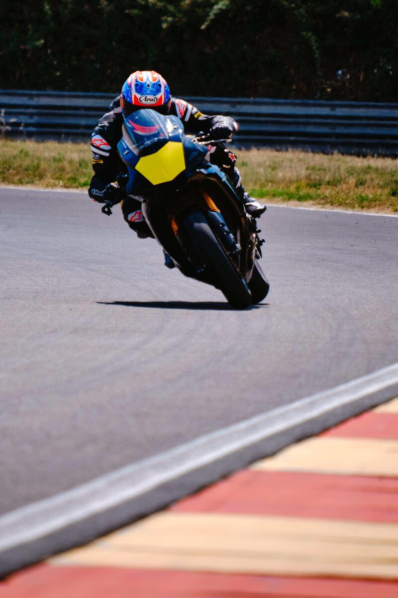 La R1M si comporta benissimo con le TD, senza prodursi in torsioni anomale o sbacchettamenti di sorta quando si inizia a provocarla spalancando con maggior anticipo e minor ritegno. E alternando le nostre uscite fra le due moto a disposizione (e in realtà anche con una terza e una quarta, dal momento che in quella giornata abbiamo prodotto diversi contenuti) le TD hanno avuto modo di raffreddarsi e tornarsi a scaldare ad ogni stint senza richiedere altro che un po' di cautela nella prima tornata prima di tornare al livello prestazionale ideale.