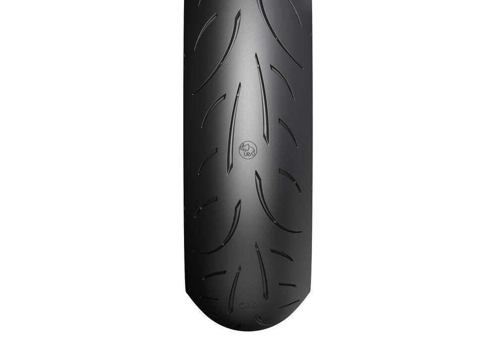 Sotto il... vestito troviamo invece una struttura inedita, sia all'anteriore che al posteriore. Elemento comune a entrambi è la caratterizzazione bimescola full silica, ovvero con elevatissime prercentuali di silice. Una scelta che velocizza i tempi di riscaldamento e le doti di grip chimico sul bagnato, ma che tradizionalmente ha come contropartita una tendenza al surriscaldamento nell'uso molto sportivo. Grazie al lavoro svolto sulle mescole dai tecnici della Casa italo-tedesca, questi compromessi sono stati superati, eliminando il difetto di questa soluzione.
