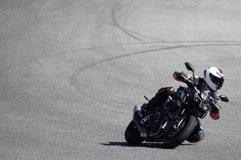 Anche una moto un po’ critica sull’avantreno come la Yamaha MT-10, che per precise scelte tecniche ha una distribuzione dei pesi più spostata all’indietro, diventa precisa ed efficace sia sul lento che sul veloce, offrendo un ottimo sostegno anche in situazioni difficili come veloci curvoni in discesa affrontati a pieno gas.