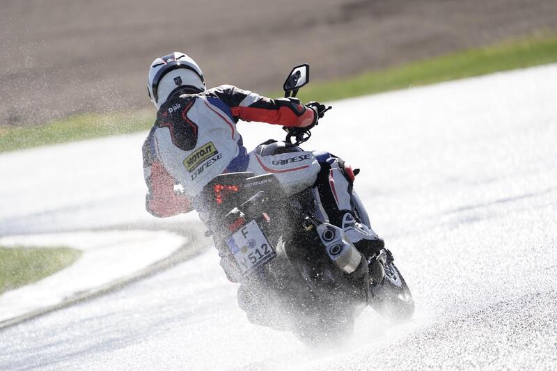 Capitolo bagnato: le Metzeler M9RR si sono comportate molto bene anche nel test sulla pista allagata, offrendo comunicativa e feeling. Anche in forte accelerazione, magari con moto prive di controlli elettronici come la Kawasaki Z900, non si percepisce quel senso di precarietà tipico di alcune coperture sportive.