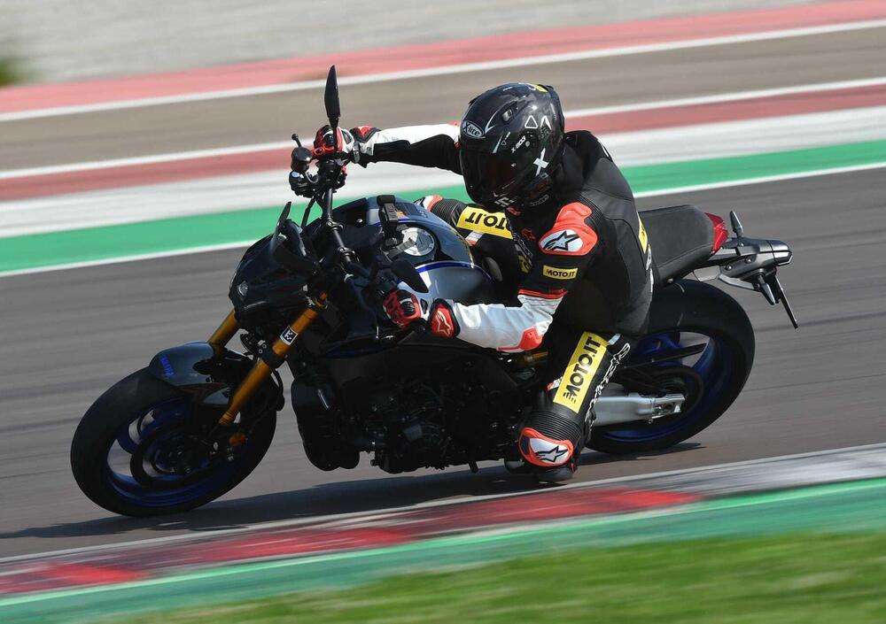 La Yamha MT-09 SP è quella delle tre che si adatta meno all'uso in pista, ciò non toglie che sappia come far divertire il pilota.