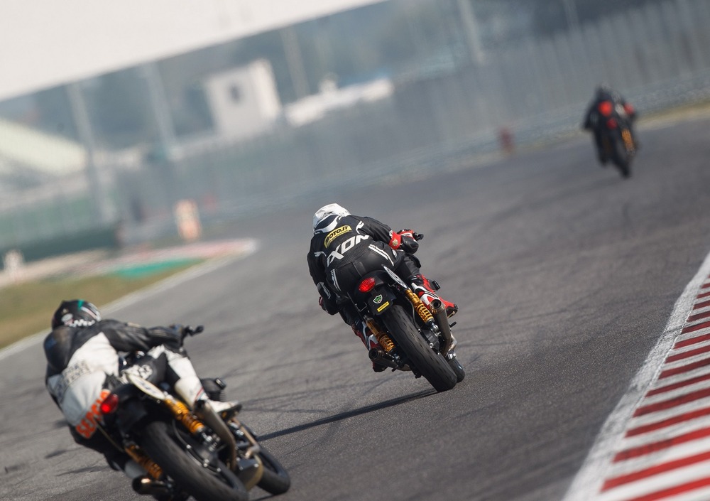 Arriviamo in circuito il sabato. Neanche il tempo di fare le verifiche e di ritirare i tagliandini dai commissari tecnici (obbligatori per affrontare le prime prove ufficiali) e già è il momento delle Qualifiche-1. La moto mette subito a proprio agio, il bicilindrico a V di Mandello è bello pacioccone e con gli scarichi Zard fa sentire appieno la sua voce. Quindi, ottenere tempi interessanti è stata questione di qualche giro: 2’08”, 2’07”, 2’06” e anche qualche 2’05”. Niente male, ci siamo guadagnati la prima metà della classifica: peccato che là davanti si giri in 2’00”. Tenere il passo di chi ha già affrontato 4 round in sella al Guzzone o in mezzo alle wild card, come i Rovelli (Team ParkinGO), che di cordoli ne hanno visti parecchi, è un altro conto. Ma io e Maurizio siamo competitivi, e non molliamo.
