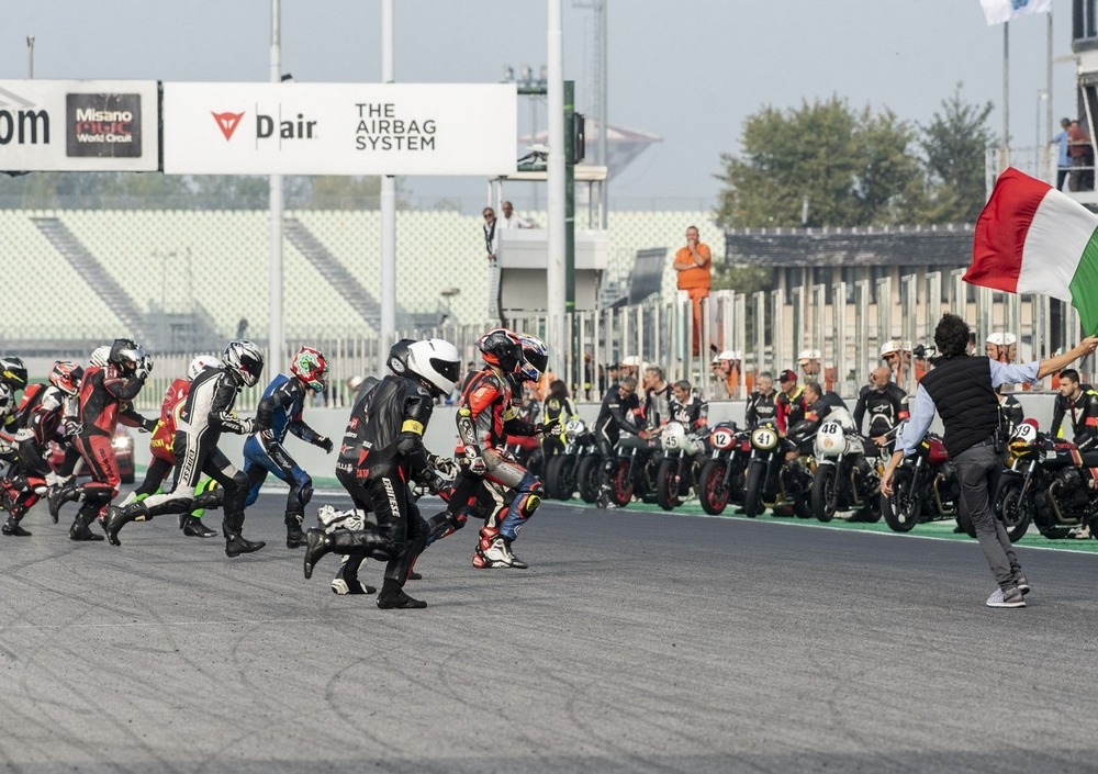 È il mio turno, ancora. L’ultimo. Questa volta non sbaglio. Entro dentro, quasi come se fosse una qualifica. Questa volta riconosco la Guzzi che ho guidato il sabato e con cui mi sono trovato. Curva dopo curva, aspetto solo la bandiera a scacchi. Il ritmo, però, è di 2’04”, con un best lap in 2’03”8. L’ultimo run sembra durare un’infinità. Poi lo scadere del tempo, l’ultimo passaggio, il traguardo e il giro d’onore con i saluti ai commissari che, come in MotoGP, si avvicinano alla pista per congratularsi con tutti i piloti.