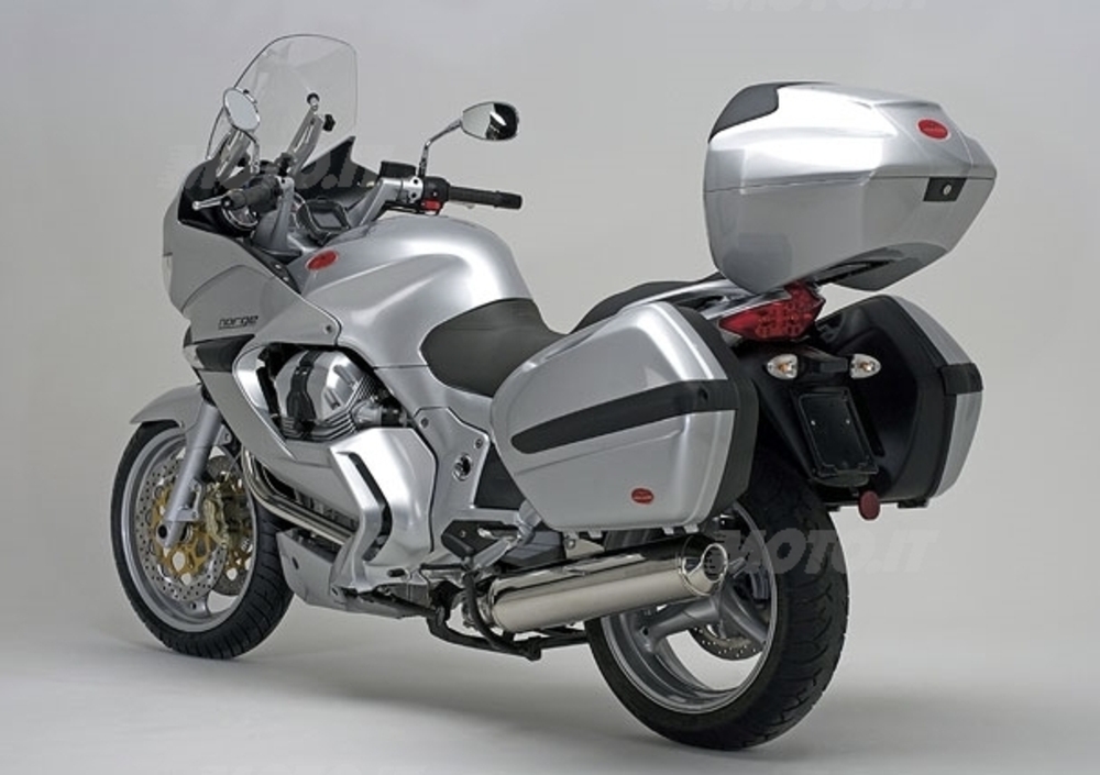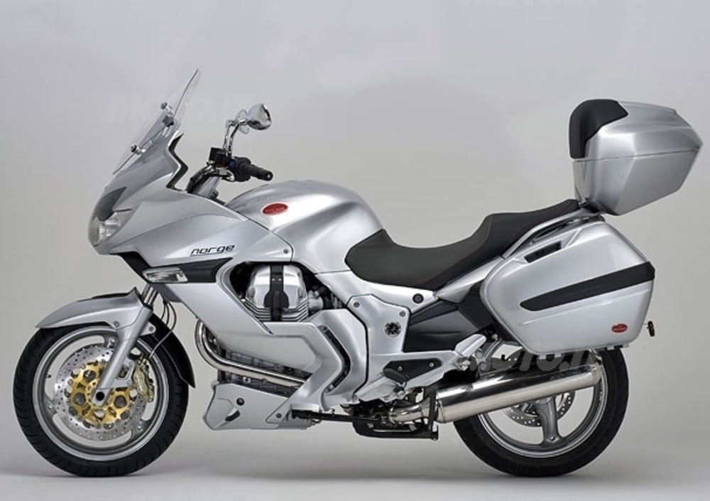 Passando a ciò che viene nascosto dalle vesti, la Norge si presenta come una vera Moto Guzzi: l’immancabile bicilindrico a v di 90° ha in questa versione da 1.151 cc una potenza dichiarata pari a 95 cv (66Kw) a 7.500 giri, con una coppia pari a 100 Nm a 5.800 giri.