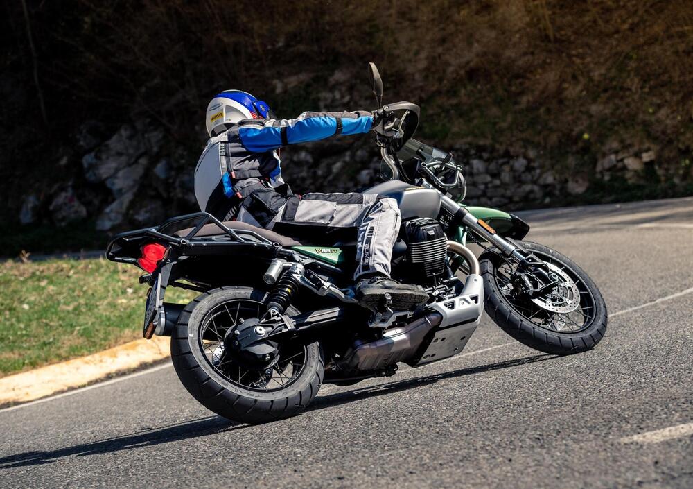 Vi diciamo subito che la Moto Guzzi non ha assolutamente stravolto la sua V85TT, una maxienduro dallo stile classico - come amano definirla a Mandello - ma dal comportamento dinamico efficace ed equilibrato. Su strada è sempre lei, grazie alla seduta bassa (83 cm da terra) e alla totale fiducia che infonde il telaio e il suo ottimo avantreno. Hai i cerchi a raggi (finalmente tubeless) da 19 pollici davanti e 17 dietro, con la forcella regolabile Kayaba che fa affondare poco l'avantreno quando si azionano gli ottimi Brembo, che mordono dischi da 320 mm con montaggio flottante.