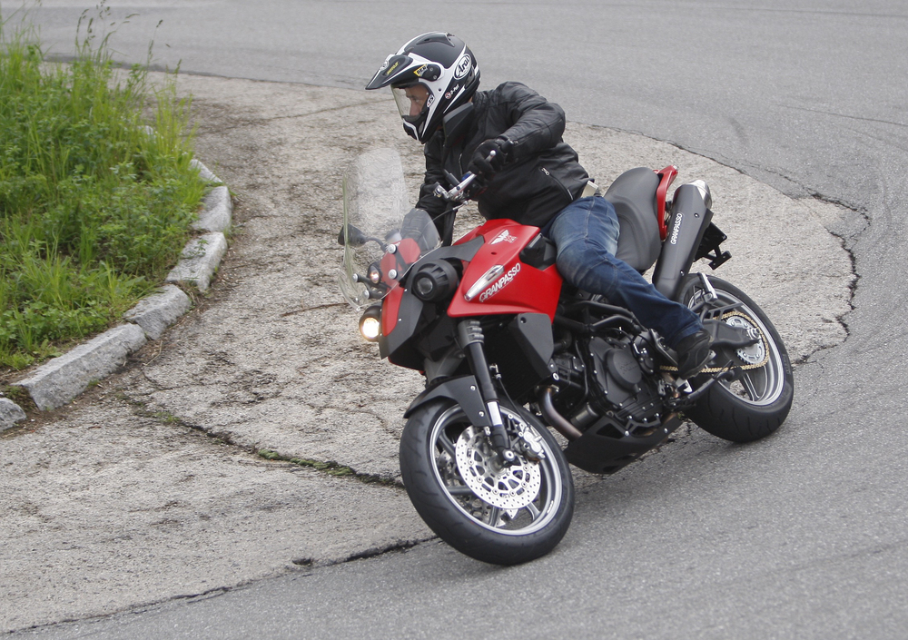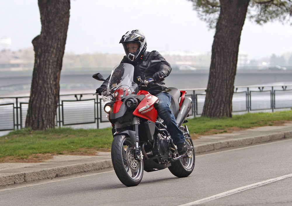 Veloce, perché il twin 1200 eroga 120 cavalli (misurati) a meno di 8.000 giri. Piace non tanto il dato in sé, quanto l’erogazione muscolosa del motore Morini. Gira regolare a 2.000 giri, da qui riprende in un crescendo che sopra i 5.000 giri entusiasma. L’allungo convince fino a oltre 8.500 giri e il rumore di scarico è coinvolgente.