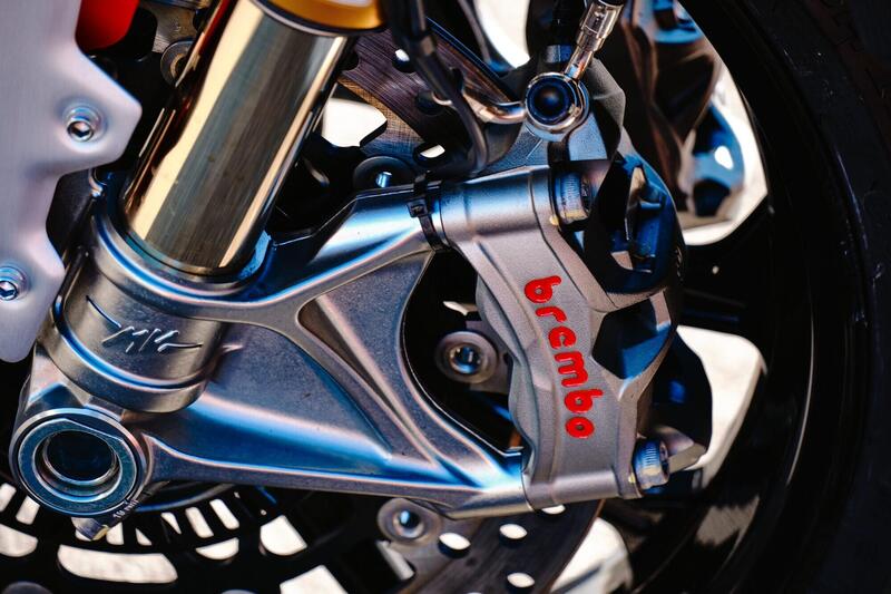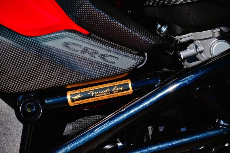 Tocco di classe la piccola targhetta apposta al telaio, che indica il nome di chi ha assemblato la moto (se non siete soddisfatti potete sempre rintracciarlo per lamentarvi di persona! ahahah). Visto il livello delle finiture e la qualità dei materiali, con leghe leggere a profusione e fibra di carbonio sopra e sotto pelle, c'è poco da lamentarsi, Stonano in un contesto di tale levatura, qualche connettore a vista e gli adesivi posti sui deflettori anteriori non coperti da trasparente.