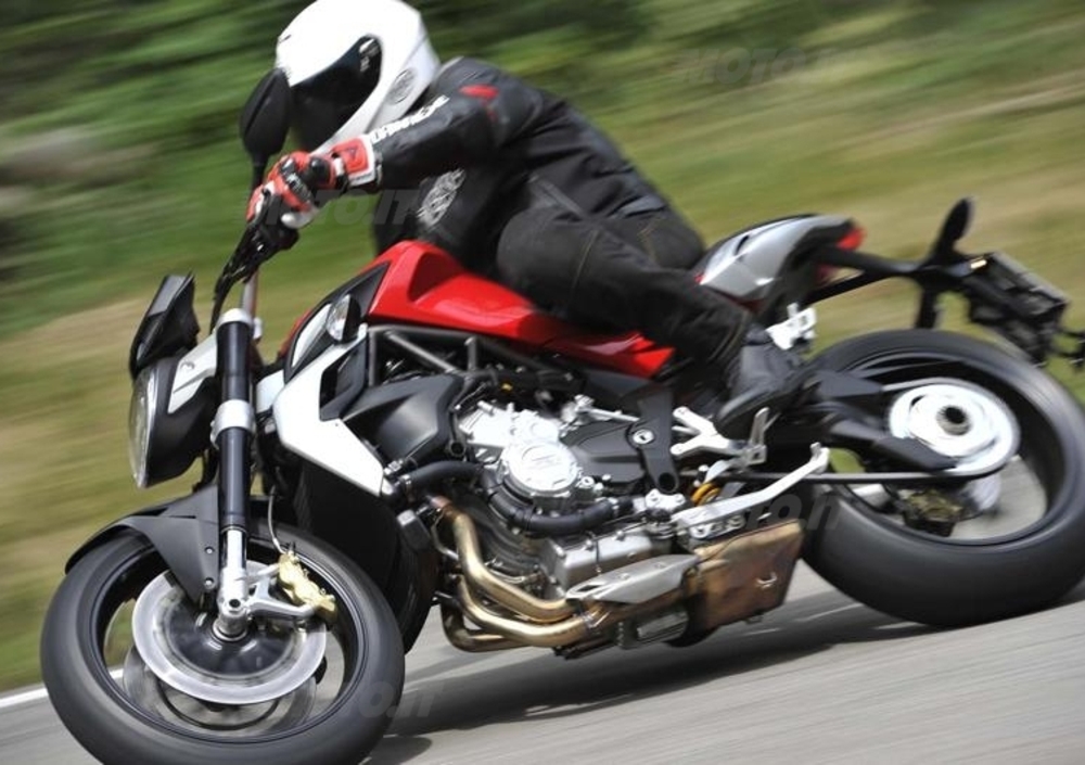 Delirio e onnipotenza, il motore diventa una vera e propria tigre, la strada viene letteralmente aggredita dalla Brutale 675, che supportata dalla ciclistica rigorosa, permette ritmi elevatissimi. Il controllo di trazione non si sente, anche perché non si inserisce, in quanto la trazione non viene mai a mancare, grazie anche al comportamento delle Pirelli Angel ST di primo equipaggiamento che garantiscono un comportamento stradale inaspettatamente buono (sulla Brutale 920 le avevo criticate), considerando la loro destinazione turistica (i giornalisti stranieri che si sono trovati ad affrontare il diluvio universale durante il giro ringraziano per le ottime prestazioni sul bagnato – Che fortunati … hanno potuto testare anche la mappa Rain!).