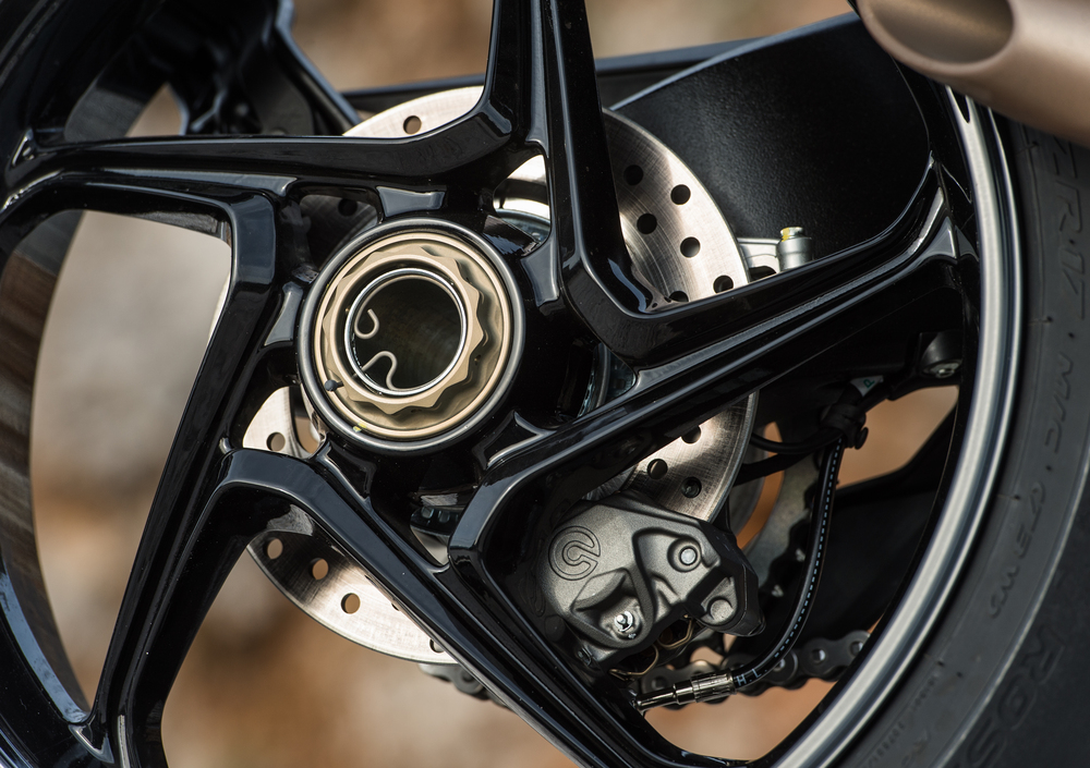Doppio disco flottante da 320 mm con pinze Brembo a quattro pistoncini ad attacco radiale, disco singolo da 220 con pinza a due pistoncini dello stesso marchio. A controllarne il funzionamento e a trarci d’impaccio da eventuali pericoli, ci pensa un sistema ABS Bosch Plus con RLM (Rear wheel Lift-up Mitigation).