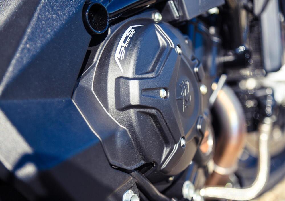 A livello trasmissione arrivano una campana frizione più robusta e un comando più affidabile e dolce nello stacco, ma anche un quickshifter EAS (Electronically Assisted Shifting) di terza generazione più preciso. La versione SCS, oggetto della nostra prova, è dotata della frizione speciale realizzata in collaborazione con Rekluse, che di fatto elimina la necessità della leva (comunque mantenuta) e introduce un freno di stazionamento sul lato destro, vicino al comando dell’unità posteriore.