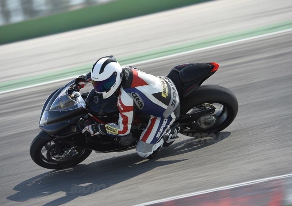 Una precisione che però manca in parte al cambio, che fatica ad assecondare un motore così prestazionale e una ciclistica così svelta, questo a causa di una corsa della leva non particolarmente contenuta e al cambio elettronico che non ci è parso particolarmente rapido e preciso. In particolare, nel passaggio tra la terza e la quarta, il conflitto elettronico/meccanico si è paventato più di una volta. I tecnici sono già al lavoro a tal proposito e, visto il risultato ottenuto sul comando dell’acceleratore, contiamo che possano risolverlo in tempi rapidi e quindi trasferirlo sulle moto già prodotte e in produzione. Le prestazioni di questa sportiva, che allarga ulteriormente la gamma di modelli disponibili nel listino MV, rappresentano una via di mezzo ideale tra quelle delle moderne seicento e le impegnative mille da quasi duecento cavalli. Una via di mezzo con prestazioni tali che, in particolare sui tracciati più lenti che poi in Italia sono la maggioranza, darà del filo da torcere alle moto di cilindrata superiore.