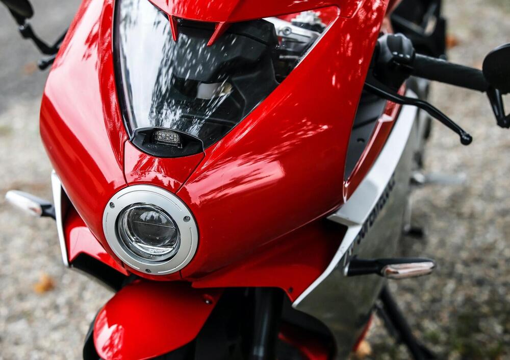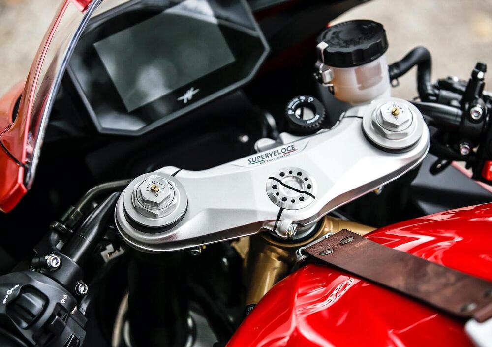 Evidentemente, a fronte di una base tecnica in larga parte invariata, ci sono diversi dettagli fra ciclistica e sovrastrutture che sono stati oggetto di revisione per adattare la Superveloce ad un impiego sempre sportivo ma certamente più orientato all’uso stradale che non a quello prettamente pistaiolo della sorella F3 800.