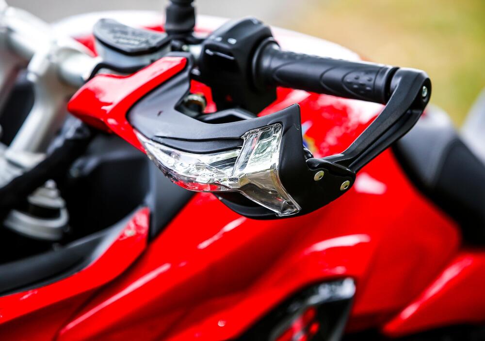 L'impianto frenante utilizza pompe Nissin con dischi e pinze Brembo: la coppia anteriore da 320 mm (con pinze radiali a quattro pistoncini) e il singolo posteriore da 220 mm. Il sistema ABS è di Bosch (è il 9 Plus) con funzione RLM, con mitigazione del sollevamento posteriore.