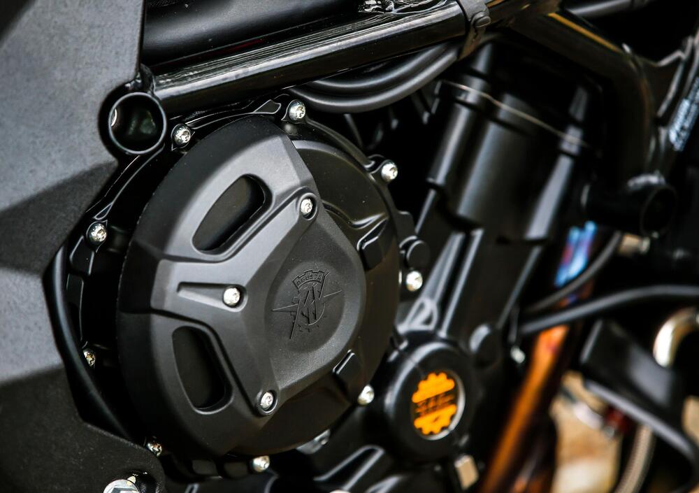 Il motore a tre cilindri (che ha distribuzione bialbero, 12 valvole e catena laterale) è un superquadro di 798 cc; eroga la potenza di 110 cavalli a 10.150 giri, con coppia massima di 8,16 kgm a 7.100 giri.
