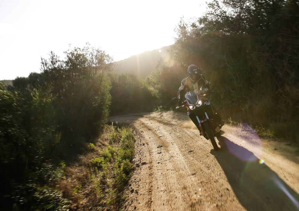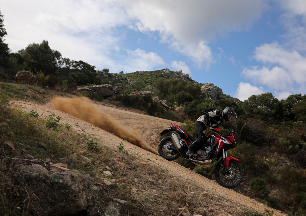 La Africa Twin CRF1100L è ancora la moto facile, immediata che ricordiamo. Su strada è molto agile, diverte nel misto e scende in piega sicura anche col 21 (proprio come faceva la 1000). In fuoristrada scatta l’amore. Più osi e più lei ti asseconda con sospensioni di altissima qualità e tanta sicurezza. Non è la bicilindrica più maneggevole sul mercato, ma il telaio è granitico come pochi nell’affrontare i tratti brutti presi a fuoco (qualche volta capita di arrivare a fuoco in un fiume in secca: ecco qui l’Africa non ha rivali).