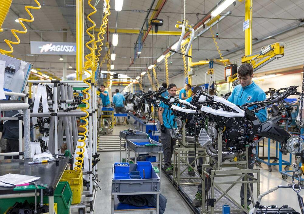 Appena arrivati siamo stati accompagnati dall'ingegner Brian Gillen, direttore R&D del marchio, a visitare la produzione. Abbiamo seguito la linea di montaggio dalla nascita del motore fino all'area di collaudo e abbiamo constatato un ordine superiore a quello che ricordavamo. Lo stabilimento può attualmente arrivare alla capacità produttiva di 15.000 moto l'anno, ma per MV Agusta non è tanto una questione di quanto ma di come. Ci ricordano a più riprese che non realizzano "pezzi" ma opere d'arte come le chiamano qui. E come dare loro torto? Brutale, Dragster, Superveloce... girando per lo fabbrica ci imbattiamo "casualmente" in quella che è la moto più attesa proprio da MV, ovvero la Lucky Explorer 9.5 della quale ci fanno trovare quasi per sbaglio un prototipo. Il suo arrivo era stato previsto proprio per questi mesi e si è temuto che non se ne facesse più nulla proprio per una supposta sovrapposizione con prodotti KTM o Husqvarna o per ragioni economiche. Niente di tutto ciò: la maxi enduro di MV si fa ed è in arrivo. La dovremmo vedere in veste definitiva il prossimo autunno. Intanto siamo riusciti a fare una ripresa del prototipo svestito.