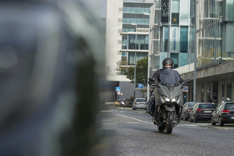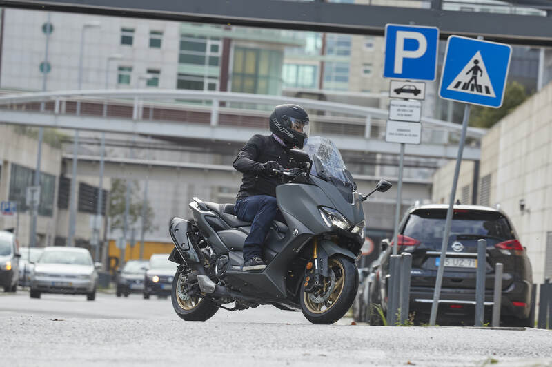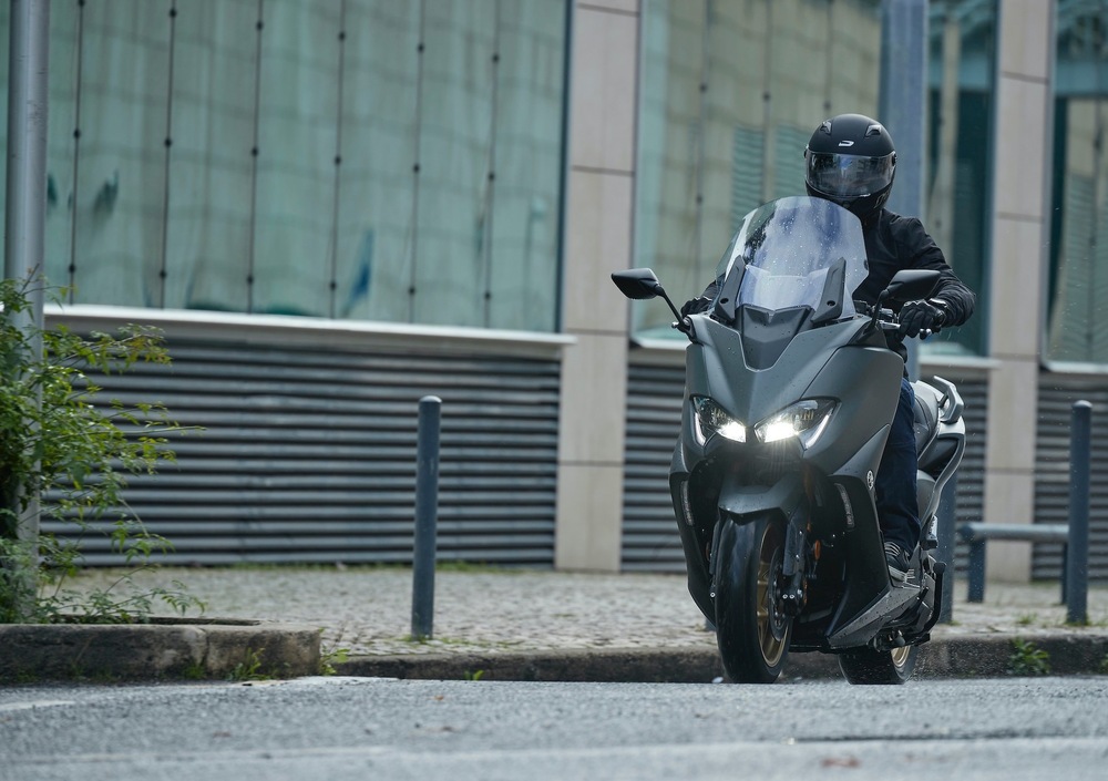 Stabile e preciso, il TMAX si rivela anche ben maneggevole in città, con un notevole equilibrio anche nelle manovre in quasi surplace per slalomare nel traffico, frangente in cui scopriamo un mezzo più agile di quanto le dimensioni non lascerebbero sospettare. Nella guida sportiva, come sempre, precisione e rigore direzionali sono nettamente superiori a qualunque altro scooter, anche se è difficile valutare l'irrigidimento delle sospensioni senza un confronto diretto.