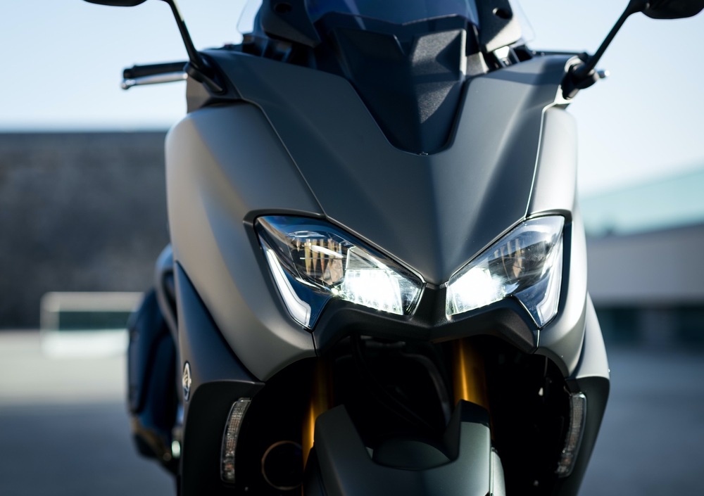 A livello estetico vale la pena di citare linee sicuramente più tese e affilate, pur mantenendo gli stilemi tipici del TMAX come il boomerang laterale, che per l'occasione si snellisce lateralmente facilitando l'appoggio dei piedi a terra per i meno alti. I gruppi ottici, compresi gli indicatori di direzione più rastremati e il faro posteriore a "T", sono tutti a LED, con diversi richiami alle sportive di Casa Yamaha.