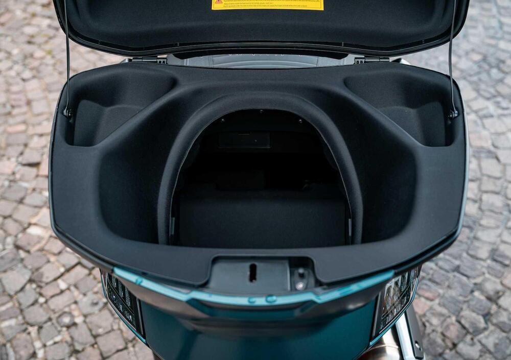 La versatilità del Metropolis si manifesta anche nella sua capacità di carico. Il sottosella, seppur ampio (22 litri), è poco profondo, ideale per una valigetta. Il vano posteriore può alloggiare un casco integrale. Entrambi i vani sono collegati e accessibili tramite pulsanti nel retroscudo. La versione SW spicca per un bauletto integrato da 54 litri, in grado di ospitare comodamente due caschi integrali. Questo vano, che si apre tramite smart key, è collegato al sottosella, creando un unico spazio continuo rivestito in tessuto protettivo, capace di accogliere oggetti lunghi fino a 90 cm. Completano la dotazione due vani anteriori.