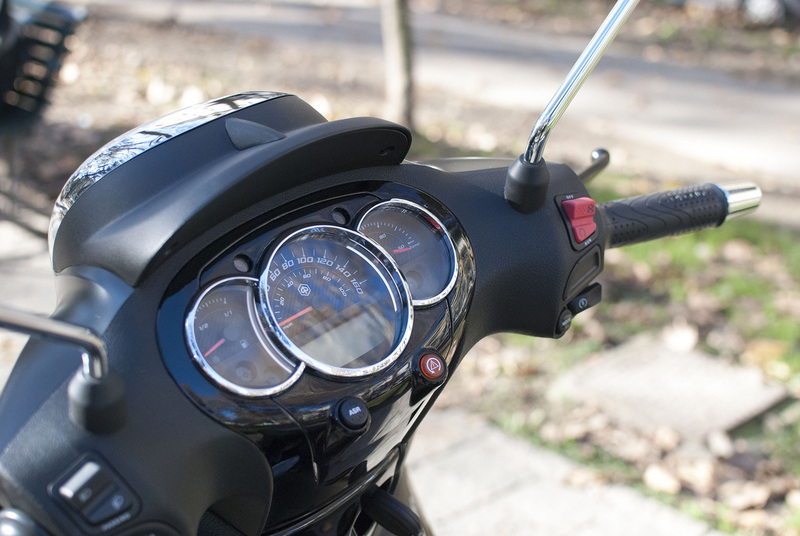 Ma tutta la gamma si arricchisce anche nella dotazione di serie e nei contenuti: sono di serie il sistema di frenata ABS e di controllo della trazione ASR. Di serie è anche il telecomando a distanza per l’apertura della sella, che permette altresì di riconoscere il proprio scooter, magari parcheggiato in mezzo a molti altri, attraverso il lampeggio degli indicatori di direzione. La presa da 12 volt, già presente su tutta la gamma, viene sostituita dalla più pratica e moderna porta USB. Nuove anche le strumentazioni, con le spie per ABS e ASR, quest’ultimo escludibile attraverso un pulsante presente sul manubrio.
