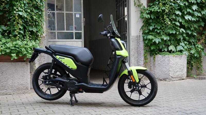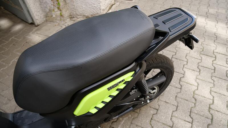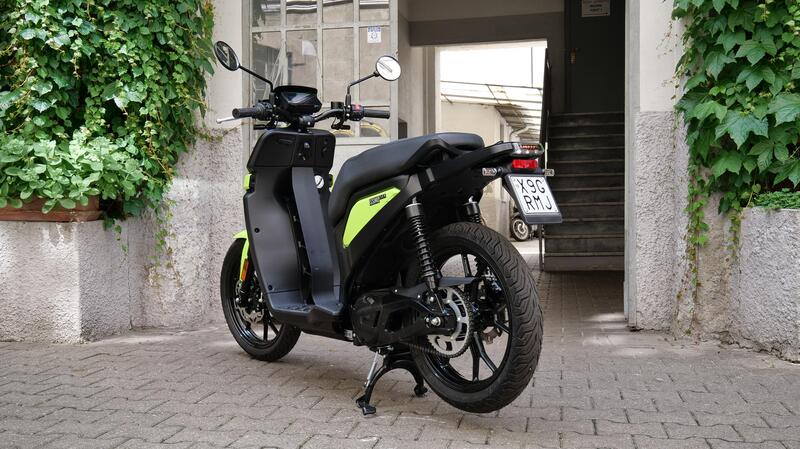 Da subito la percezione è quella di avere per le mani un motorino solido e ben fatto. Non si tratta di una due ruote lussuosa, ma l'impressione è di un prodotto di qualità che, ricordiamo, viene proposto a 3.990 euro di listino. La dotazione è completa, la pedana piatta e sotto la sella troviamo la batteria da 2,2 kWh con il caricabatteria entrambi estraibili ed un vano non troppo capiente ma sufficiente per piccoli oggetti come guanti, documenti e antipioggia. La seduta è ampia e abbiamo trasportato con facilità un passeggero. Tra le dotazioni non possiamo non citare, oltre alle luci a led, il sistema keyless che consente di avviare il motorino senza l'inserimento della chiave. Per farlo, però, non basta avvicinarsi ma occorre sempre schiacciare il pulsante di sblocco sul telecomando.