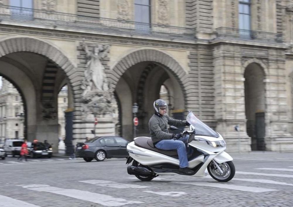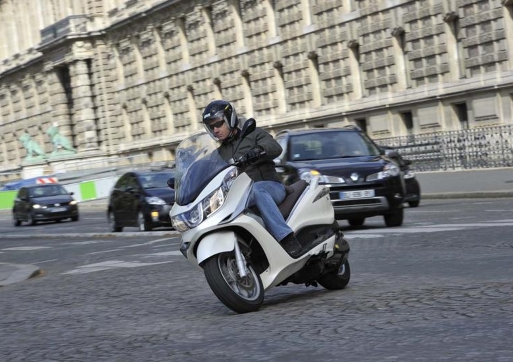 A Parigi abbiamo provato la versione Executive 350, che rappresenta il miglior compromesso in termini di prezzo di acquisto, costi di gestione e prestazioni complessive. Il 125 cc è infatti rivolto ai possessori della sola patente B ed è una cilindrata particolarmente richiesta sul mercato francese; il 500 cc è la versione muscolosa, forte di 41 cavalli e di prestazioni eccellenti (un po' meno i consumi), adatta ai percorsi extraurbani e dotata dell'esclusiva regolazione elettrica del precarico del mono ammortizzatore.