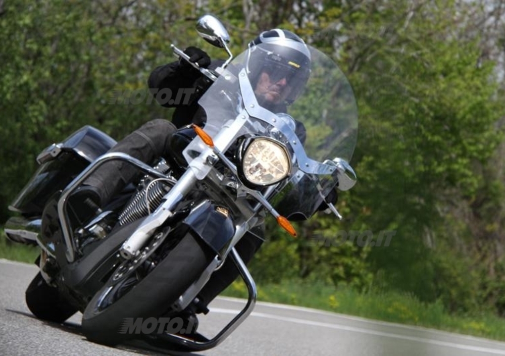 Bisogna prenderci la mano, insomma, ma queste non son certo novità per chi conosce e utilizza abitualmente motone del genere. Detto ciò, una volta tirata la leva della frizione (morbida e abbastanza modulabile), inserita la prima (operazione inesorabilmente rumorosa) e rilasciata nuovamente la leva, si scopre abbastanza presto che muovendosi con la Cross Roads - come con molte altre muccone del genere - la vita tutto sommato è tutt’altro che spiacevole, perfino in città. Calore del motore a parte, naturalmente, man mano che il clima inizia a diventare meno rigido.