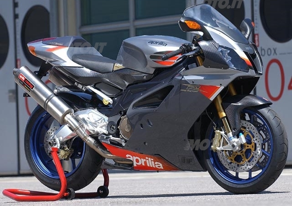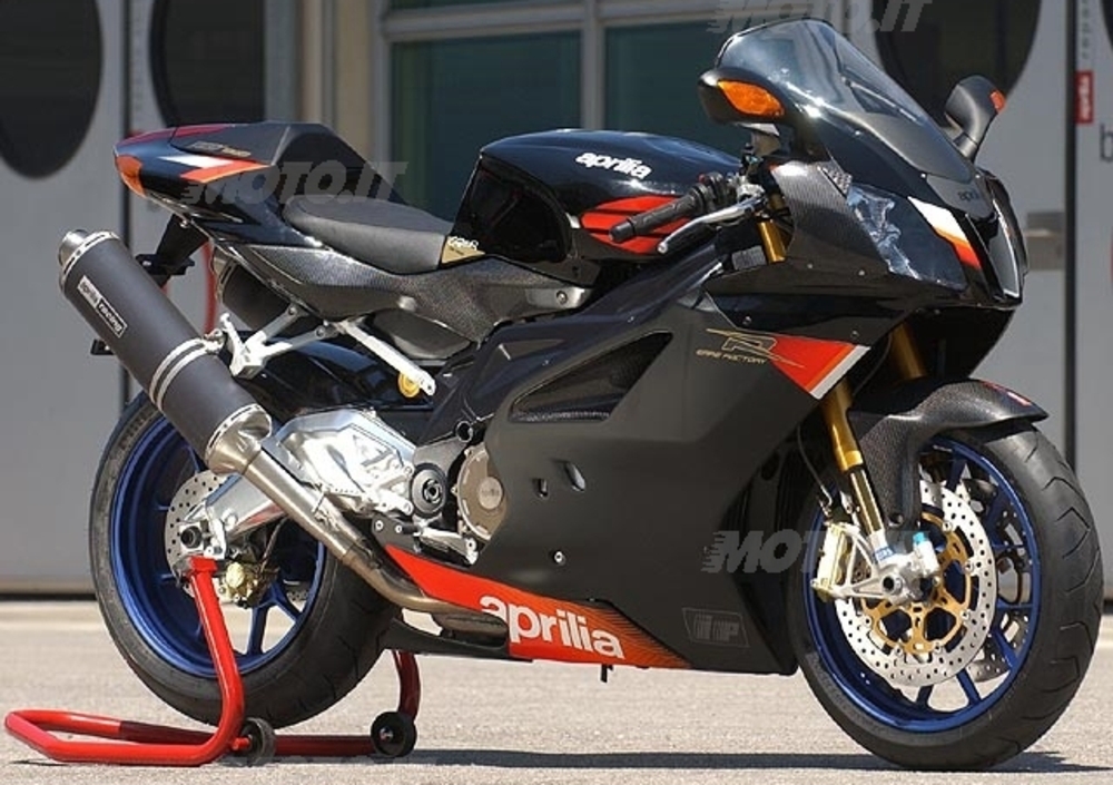 Numerosi i particolari in fibra di carbonio dedicati alla RSV Factory: parafango anteriore e posteriore; deflettori cupolino; estrattori carena; fiancatine laterali. Tutto questo per “limare” peso su di una moto per la quale l’Aprilia dichiara 185 Kg a secco.