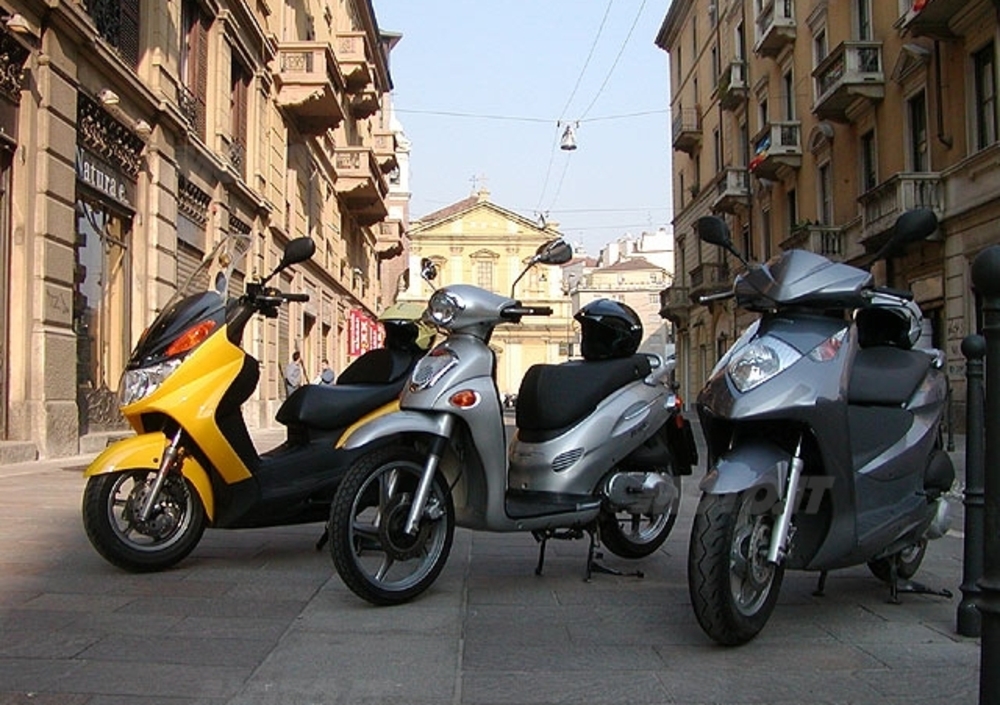 Esteticamente, la prima cosa che balza agli occhi, rispetto ai concorrenti, è la dimensione delle ruote (da 16") che se da una parte toglie spazio alla pedana poggiapiedi ed al vano sottosella, dall'altra garantisce un miglior assorbimento delle asperità ed una maggiore stabilità sulle strade sconnesse.