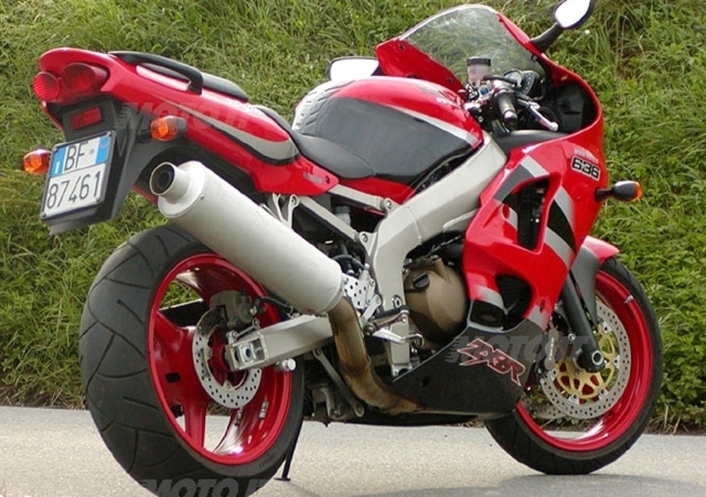 La prima cosa che balza agli occhi, è quell'adesivo sulla carena con tre numeri 636, che indica la cilindrata effettiva del motore, che passa da 599 a 636 cc., grazie all'aumento dell'alesaggio da 66 a 68 mm.