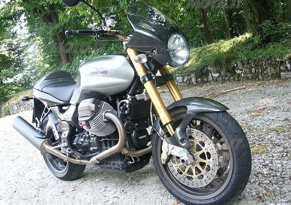 A Mandello, però, non sono stati con le mani in mano e il bicilindrico trasversale ha beneficiato di alcuni interventi atti a migliorarne l’erogazione e l’emissione di sostanze inquinanti. La cilindrata totale è di 1.064 cc, due valvole per cilindro con distribuzione ad aste e bilancieri. Alimentazione ad iniezione elettronica Magneti Marelli IAW con corpi farfallati da 45 mm. Catalizzatore con sonda Lambda.