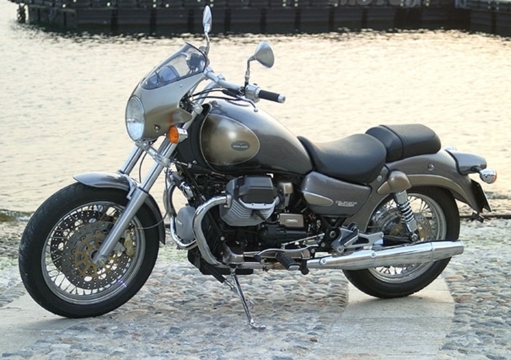 Look ultra classic per questa Titanium in pieno stile custom, ma che strizza l’occhio al mondo delle touring stradali. Infatti da una parte troviamo elementi che richiamano la tradizione, dall’altra la Titanium si permette di montare componentistica prettamente sport-touring. Questa scelta è uno dei capisaldi Moto Guzzi, ed è legata all’importanza dell’aspetto dinamico di tutte le sue moto, siano esse sportive o no.