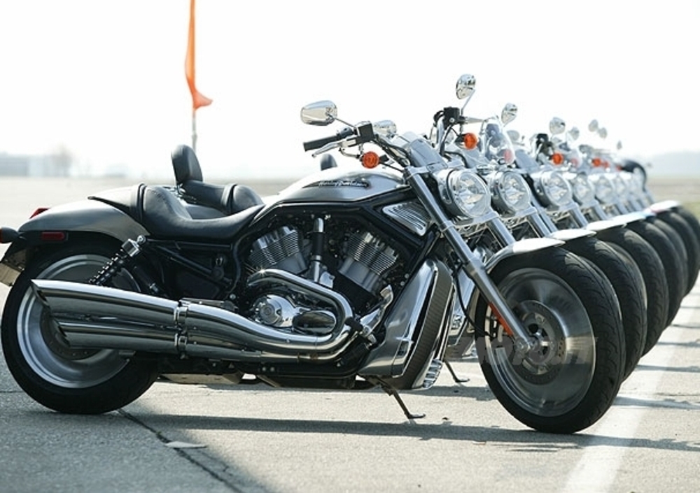 Le moto messe a disposizione sono delle Harley V-Rod, moto basse, lunghe e con un bicilindrico decisamente muscoloso da far sfogare sulla pista dell’aeroporto militare di Cameri.