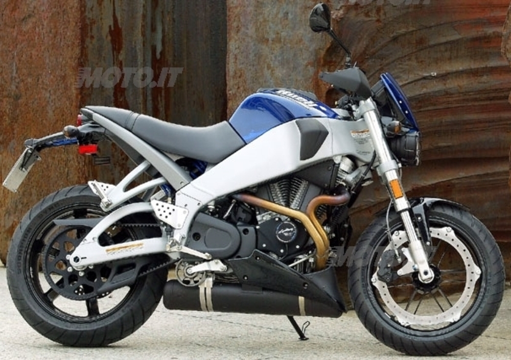 Dotazione ciclistica di prim’ordine per questa Buell che ostenta un paio di forcelle Showa regolabili nel precarico della molla oltre che nel freno in estensione e compressione. Anche il mono posteriore è uno Showa ed è anch’esso registrabile nel precarico e nel freno in estensione e compressione. Il telaio in alluminio, come già scritto, ha la funzione oltre che strutturale, anche di serbatoio del carburante (14 litri di capacità) mentre il braccio sinistro del forcellone funge da serbatoio dell’olio.