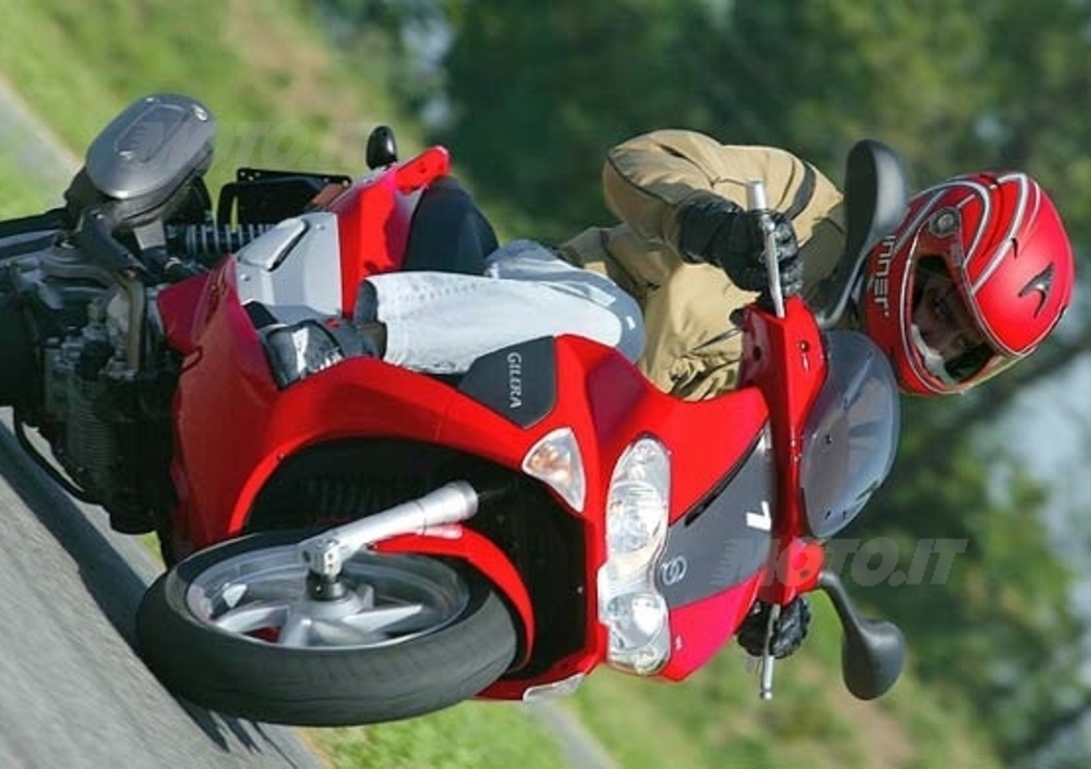 La tenuta di strada è notevole e il grip dei due “gommoni” Pirelli EVO 22 permette di fresare cavalletto e scarico in piena tranquillità (sbarbati…ricordate che sono in pista e non per strada…) senza che la ciclistica mostri la corda (che differenza rispetto al precedente…). Le sospensioni tarate sul rigido, se da una parte sottraggono qualche punto al comfort, dall’altra permettono di “sentire” meglio quel che sta succedendo sotto al sedere. I freni sono potenti e progressivi, decisamente al top per la categoria, anche dopo numerosi giri di pista sono sempre presenti ed al massimo della forma. Dunque l’esame in pista è stato superato a pieni voti, sempre considerando che è il terreno più sfavorevole a questa tipologia di mezzi, questo vuol dire che i tecnici della Gilera erano e sono consapevoli dell’ottimo lavoro svolto.