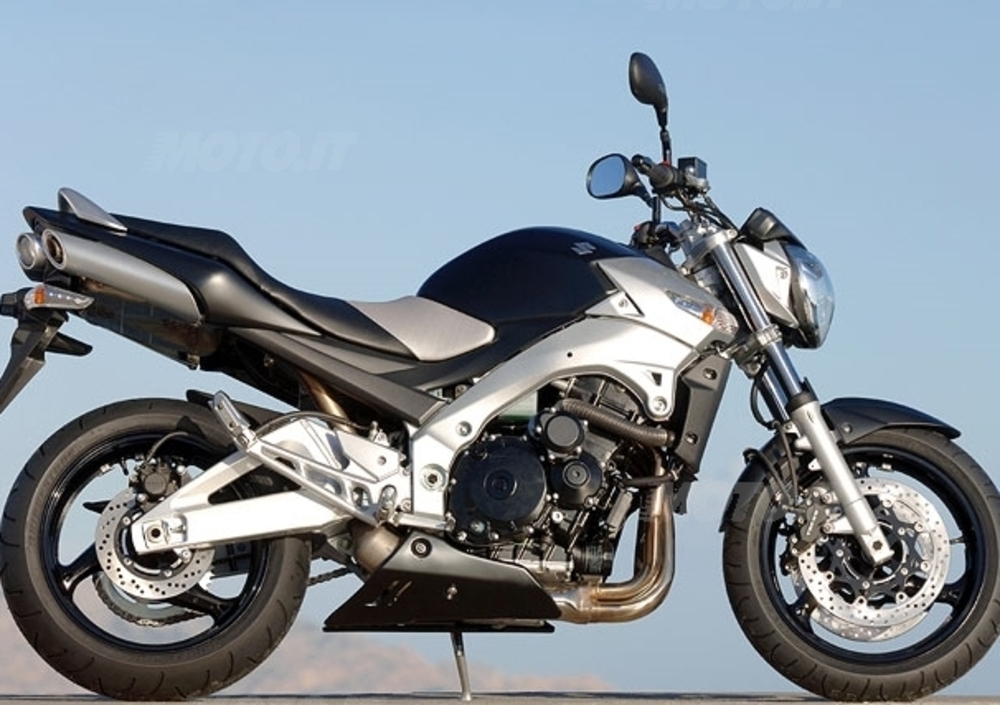 Le linee spigolose e gli incastri di superfici rendono la naked Suzuki aggressiva e dinamica. La parte anteriore caratterizzata dal faro a riflettore multiplo incastonato tra le piastre di supporto e la rastremata strumentazione, rende facilmente riconoscibile la media Suzuki.
