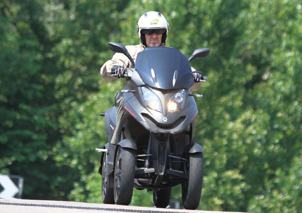 Più recentemente anche in redazione abbiamo avuto a disposizione per qualche pochi giorni il Q4 per un test decisamente più “normale”. Ed eccolo qui, l’appetibile scooter/quad capace di inclinarsi fino a ben 45 gradi anche sul bagnato, con il rassicurante supporto di quattro ruote - le due posteriori ovviamente motrici – a suddividersi gli oltre due quintali e mezzo secco dichiarati dal Costruttore.