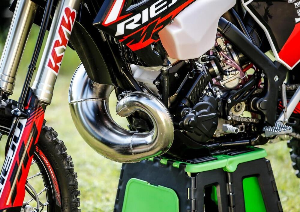 Anche il pacchetto freni è di altissimo livello con pinze e pompe Nissin di prima categoria con un disco NG da 260 mm flottante all’anteriore ed uno, sempre NG da 220 mm fisso al posteriore che trasmettono grande progressione e potenza. Il modello di punta è equipaggiato con molti accessori dedicati al racing come il manubrio Renthal TwinWall, cerchi Goldspeed Pro HD, mozzi anodizzati rossi, ventola del radiatore, protezioni motore e telaio Polisport, gomme Michelin e carico FMF.