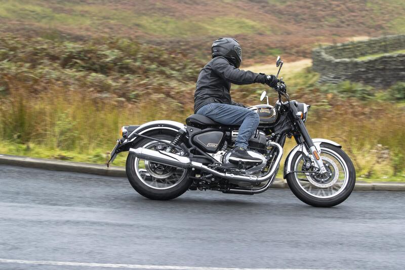 Sul piano della guida tra le curve la Classic è bilanciata e neutra, priva di reazioni caratteriali e per nulla esigente di un periodo di apprendistato. Si infila nelle svolte con un'agilità quasi da naked e mantiene la coerenza direzionale fino in uscita, spinta poi dal motore che in ogni marcia garantisce il giusto tiro per non piantarsi al punto di corda. La dinamica di guida è talmente favorevole che ci si spinge volentieri fino a prendersi delle libertà che però vengono prontamente respinte dalla ciclistica che mostra i suoi limiti quando le si chiedono prestazioni per le quali non è progettata: principalmente la sospensione posteriore fa sentire l'escursione limitata e la sua taratura turistica.