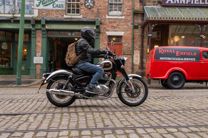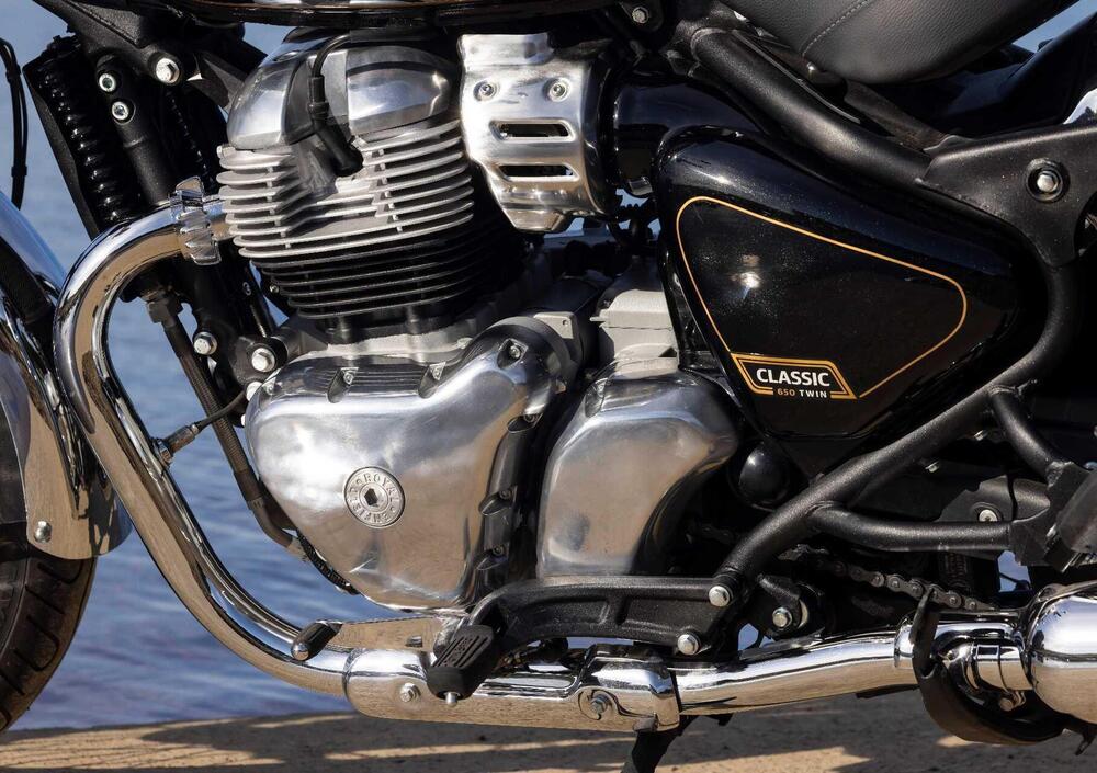 Il motore è il più che collaudato bicilindrico in linea di 650 cc da 47 cavalli di potenza a 7.250 giri/min e 52,3 Nm a 5.650 giri/min, adatto quindi alle patenti A2. Omologato Euro 5+, ha due valvole per cilindro ed è raffreddato ad aria e olio, con un radiatore dalla presenza discreta sotto il cannotto di sterzo. La trasmissione è affidata al cambio a sei rapporti e a una frizione assistita e antisaltellamento. Per questa unità Royal Enfield dichiara una messa a punto specifica per l'uso “Classic”, più che altro a livello elettronico. Niente mappe, nè ride by wire ma in questo contesto non può essere considerato un limite.